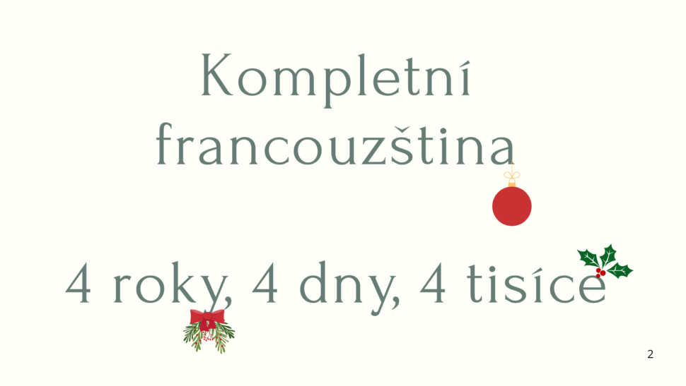 Kompletní franocuzština za 8 504 Kč, ve speciálním vánočním balíčku za 4 025 Kč.
