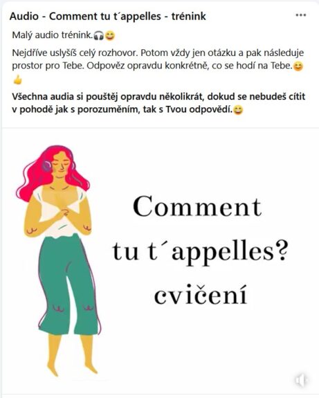 Jsem si jistá, že pokud budete provádět (nejen poslouchat :D) mé instrukce, uděláte ve francouzštině velký krok vpřed. Snad se nebudu mýlit, když řeknu, že je naším cílem se v cizím jazyce DOMLUVIT. Proto se v kurzu učíte pomocí konverzace, kterou pak můžete rovnou prakticky využít.